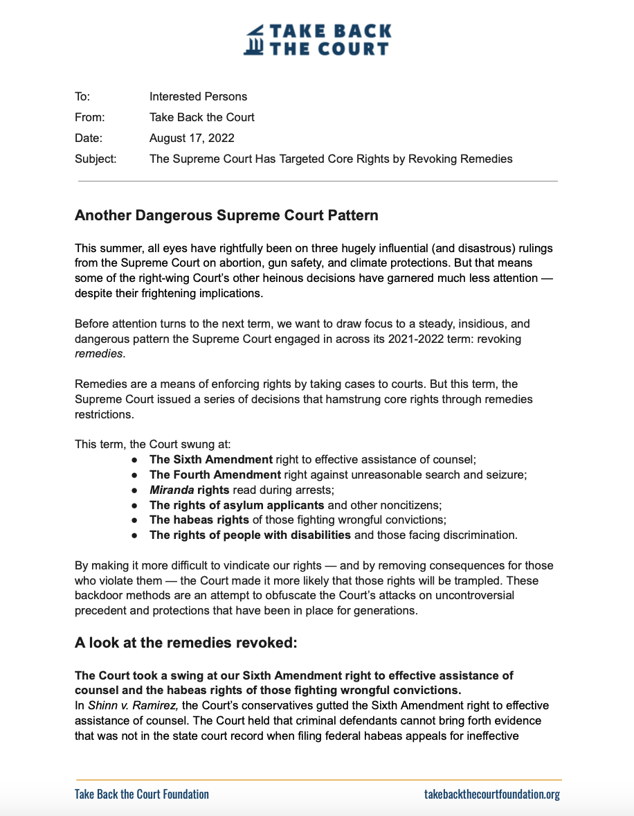 MEMO: The Supreme Court Has Targeted Core Rights by Revoking Remedies